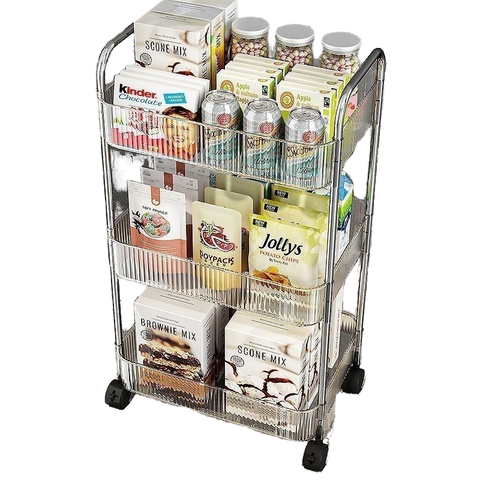 ชั้นวางของ3ชั้นสำหรับใช้ในครัวเรือนชั้นวางของในครัวเรือนชั้นวางของในรถเข็น